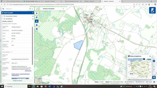 Sprzedam działkę rolną o powierzchni 5,42 ha we wsi Kolno w powiecie olsztyńskim. Ziemia głównie klasy III oraz IV. ...
